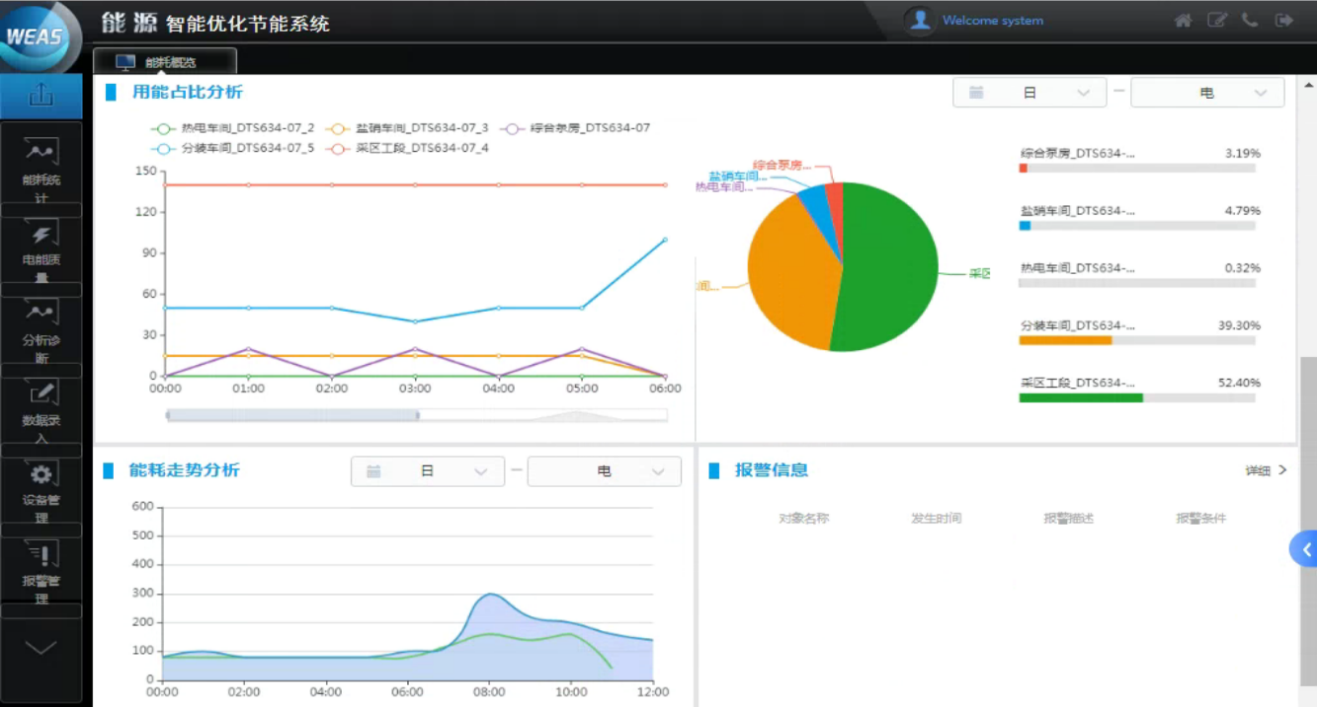 WEAS能源监测分析系统运行以来每年节约电费35万元。具体节能效益如下: