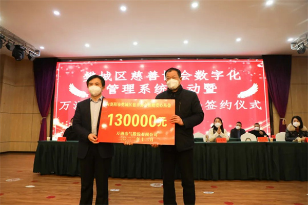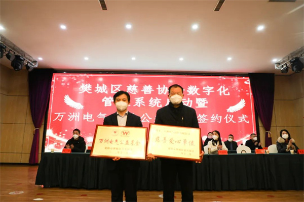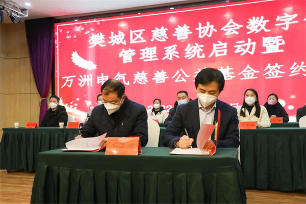 12月30日下午,在樊城区慈善协会举办的“ 樊城区慈善协会数字化管理系统启动暨mksport体育电气慈善公益基金签约”仪式上,mksport体育电气为樊城区慈善协会捐款13万元成立“mksport体育电气公益基金”并获“慈善爱心单位”荣誉称号。mksport体育电气董事长、总经理赵世运参加签约仪式。