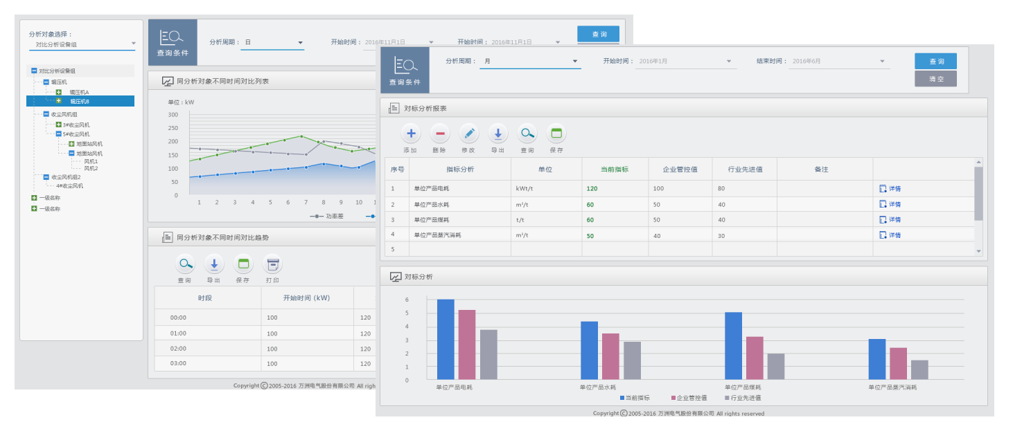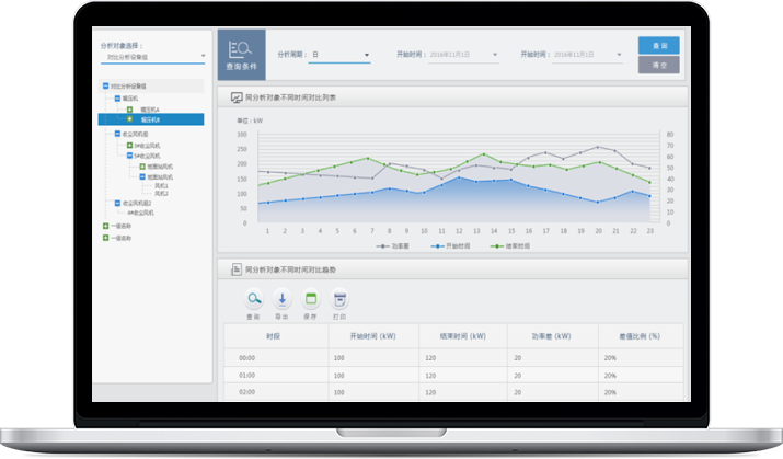 分析同类型设备间的差异变化和能耗变化,寻找最佳操作方式。