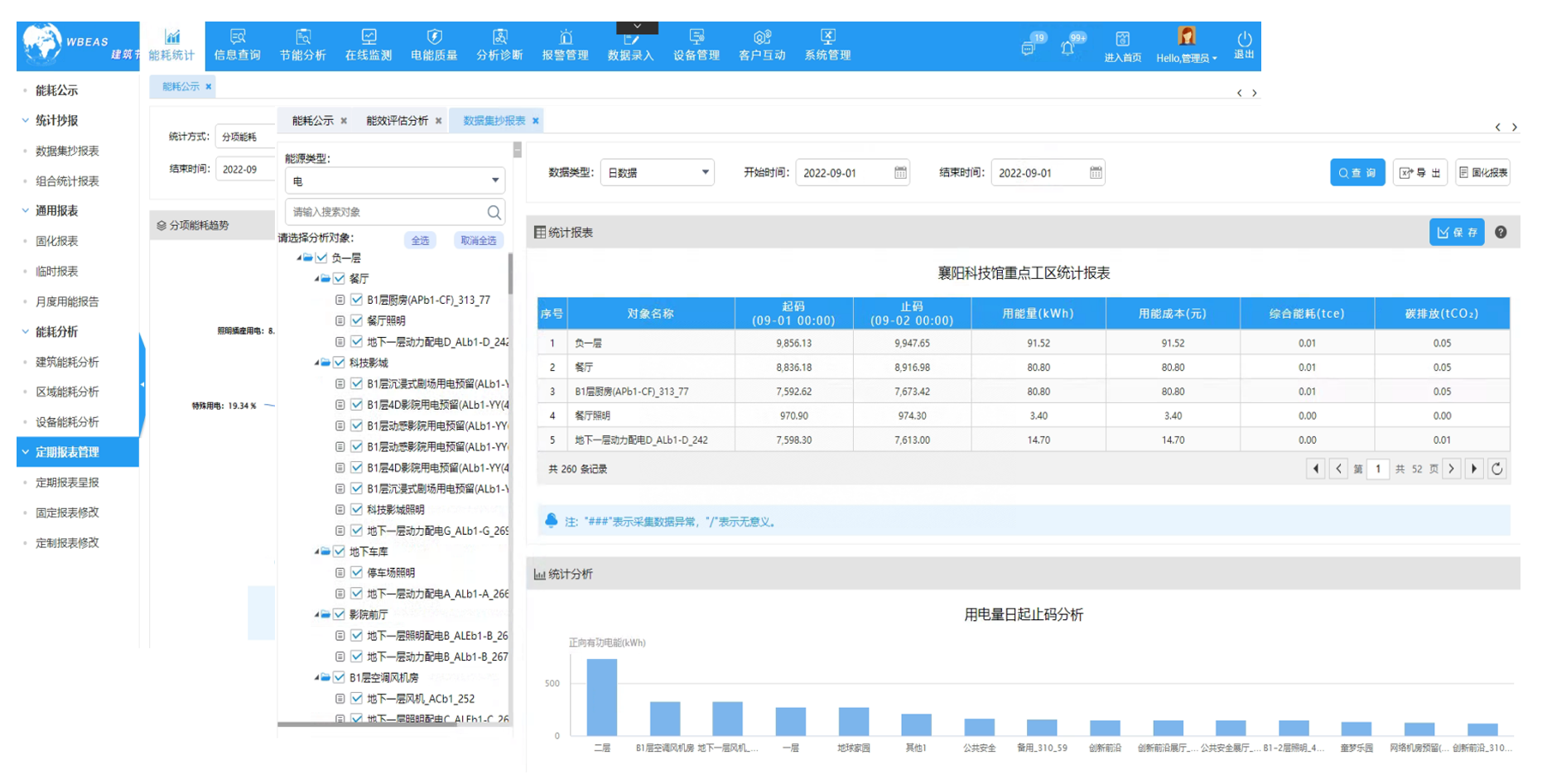 能耗统计功能主要是为用户提供现场能耗统计数据图表展示以及多样化的报表,让用户掌握其整个建筑用能情况等信息。